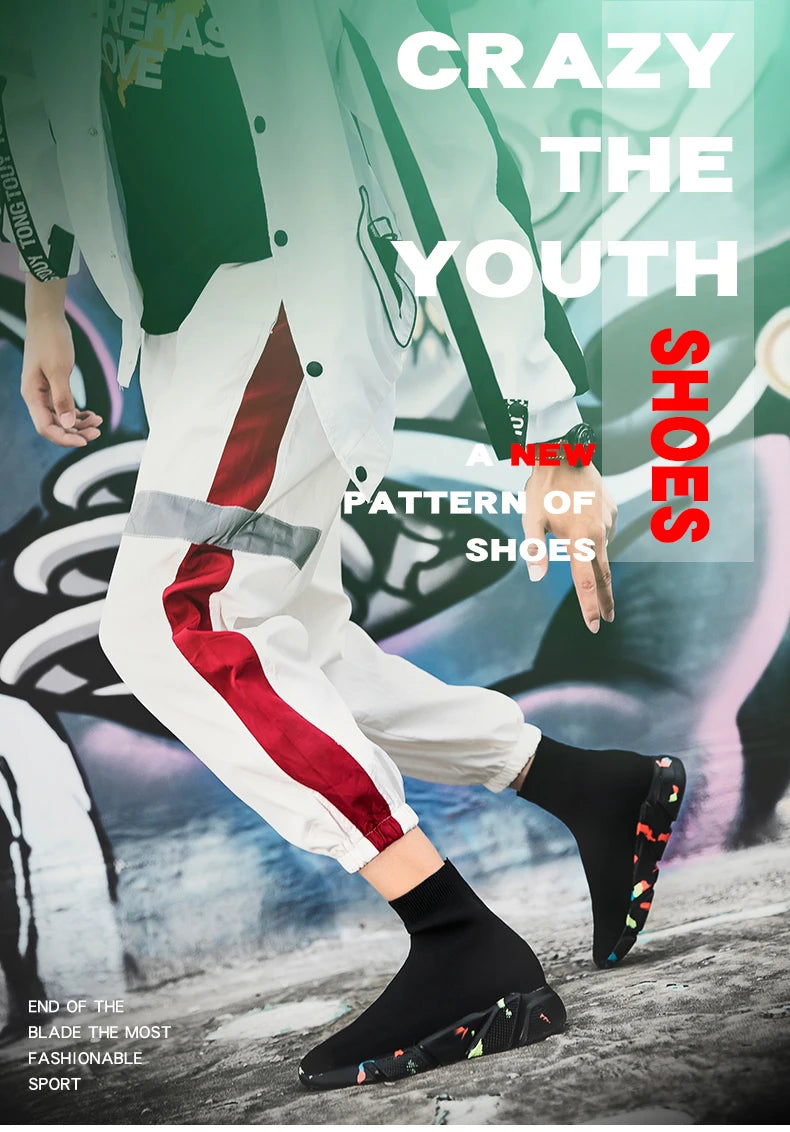 2025 Spring Sneakers For Men Black Slip-On Non leather Casual Shoes High Top Laceless Footwear Light Sock Shoes Fashion Unisex - camouflage / 47 / CN